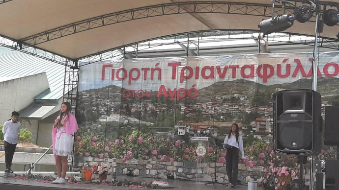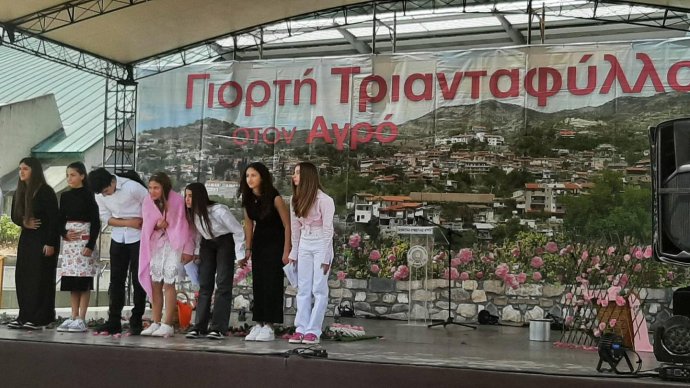 Το Σχολείο μας, αποδεχόμενο την τιμητική πρόσκληση να συμμετέχει στα εγκαίνια της 17ης Γιορτής του Τριανταφύλλου στον Αγρό, παρουσίασε το Σάββατο 10 Μαΐου 2025, στην παρουσία πλήθους κόσμου, το δραματοποιημένο παραμύθι «Το τραγούδι της Ρόδης του Αγρού».