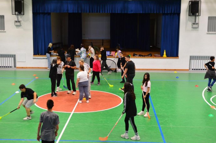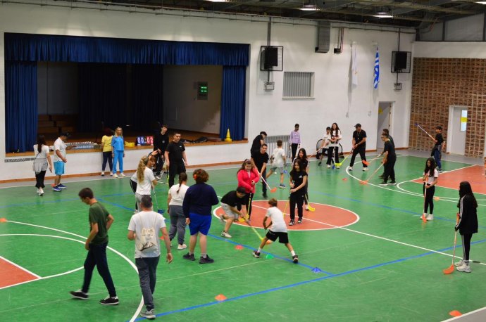 Την Τετάρτη 14/5/2025 είχαμε τη χαρά να υποδεχθούμε στο Σχολείο μας τους μαθητές και τις μαθήτριες του Ειδικού Σχολείου Αποστόλου Λουκά. Έφθασαν με το τρενάκι του Αγρού μαζί με τους/τις συνοδούς τους με την καθοδήγηση και την αγάπη του κ. Γιώργου Λεοντίου, Βοηθού Διευθυντή του σχολείου τους. Την ίδια μέρα είχαμε επίσης τη χαρά να υποδεχθούμε την Ε΄ τάξη του ΚΣΤ΄ Δημοτικού μαζί με τον δάσκαλό τους κ. Σωκράτη Πουλλή. Κατευθυνθήκαμε όλοι και όλες στο Κλειστό μας Γήπεδο, όπου οι φιλοξενούμενοί μας έπαιξαν Floorball (παιχνίδι με μπαστούνια) και Boscia (παιχνίδι στόχου) μαζί με παιδιά της Γ΄ Γυμνασίου του Σχολείου μας. Διασκέδασαν και το ευχαριστήθηκαν όλα τα παιδιά που συμμετείχαν πρόθυμα. Οι μαθητές και οι μαθήτριές μας πήραν μαθήματα ζωής με μότο το εξής: «Είμαστε όλοι/ες ίσοι/ες, είμαστε όλοι/ες διαφορετικοί και όλοι/ες έχουμε τα ίδια δικαιώματα στη ζωή».