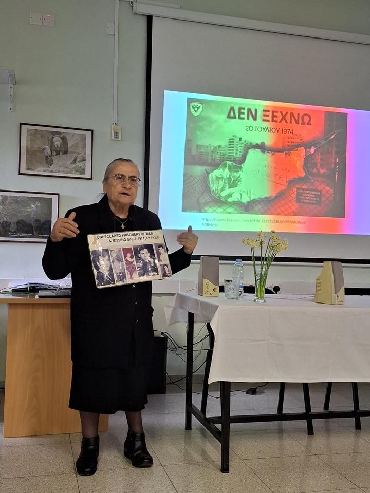 Είχαμε την ιδιαίτερη χαρά και τιμή να φιλοξενήσουμε την κυρία Χαρίτα Μάντολες, τη «μάνα των αγνοουμένων», η οποία μοιράστηκε με τους μαθητές μας τη συγκλονιστική προσωπική της μαρτυρία ζωής, προσφέροντας πολύτιμα μηνύματα μνήμης, δύναμης και ελπίδας. Ο λόγος της, λιτός και αληθινός, υπενθύμισε σε όλους μας το χρέος της μνήμης, της ευθύνης και της συνέχειας.