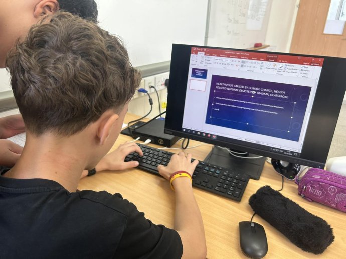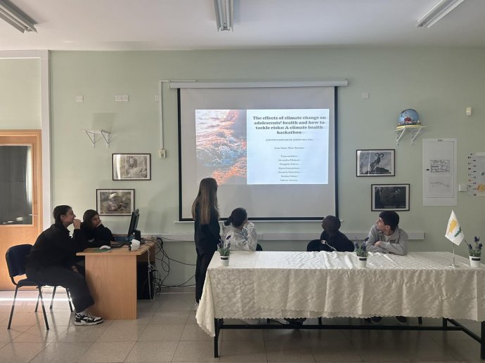 Οι μαθητές και μαθήτριες της Β΄ Γυμνασίου συμμετείχαν στο Climate Health Hackathon, του Προγράμματος ASEFClassNet17, το οποίο παρέχει ευκαιρίες ανάπτυξης ικανοτήτων για συνεργατική διδασκαλία και μάθηση. Οι μαθητές και οι μαθήτριες χρησιμοποίησαν εκπαιδευτικά εργαλεία τεχνητής νοημοσύνης, για να μελετήσουν τα προβλήματα που προκαλεί η κλιματική αλλαγή στην υγεία των εφήβων και να προτείνουν πιθανές λύσεις. Η δράση ολοκληρώθηκε με την παρουσίαση της εργασίας των ομάδων.