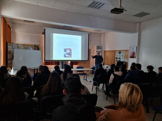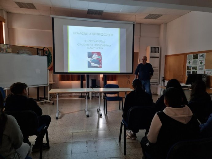 Στο πλαίσιο γνωριμίας του Ξενοδοχειακού Τμήματος του Απεήτειου Γυμνασίου Αγρού σε μαθητές/μαθήτριες γυμνασίου, ο κ. Στέλιος Λαπέρτας, συντονιστής της Ξενοδοχειακής Σχολής, επισκέφθηκε τη Δευτέρα 16/12/2024 το Γυμνάσιο Σολέας. Εκεί είχε την ευκαιρία να συνομιλήσει με μαθητές/μαθήτριες για τα μαθήματα και τις ευκαιρίες που ανοίγονται σε απόφοιτους Γυμνασίου να φοιτήσουν ως μάγειρες και τραπεζοκόμοι. Ευχαριστούμε τη Διεύθυνση του Γυμνασίου Σολέας για τη φιλοξενία.