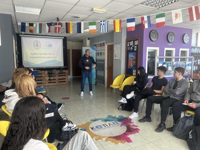 Στις 14 Μαρτίου, οι Δόκιμοι Πρεσβευτές και οι Δόκιμες Πρέσβειρες του Προγράμματος Σχολείο Πρεσβευτής του Ευρωπαϊκού Κοινοβουλίου επισκέφθηκαν το Κέντρο Πληροφόρησης Νέων Αγρού, όπου είχαν την ευκαιρία να παρακολουθήσουν μια πολύ ενδιαφέρουσα παρουσίαση και να παίξουν ένα διαδραστικό παιχνίδι σχετικά με την Ευρωπαϊκή Ένωση, τη λειτουργία της και το τι μας προσφέρει. Ιδιαίτερες ευχαριστίες στον κ. Νικόλα Χριστοφή για τη φιλοξενία και όλες τις πληροφορίες που έδωσε στους μαθητές και τις μαθήτριες.