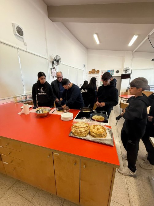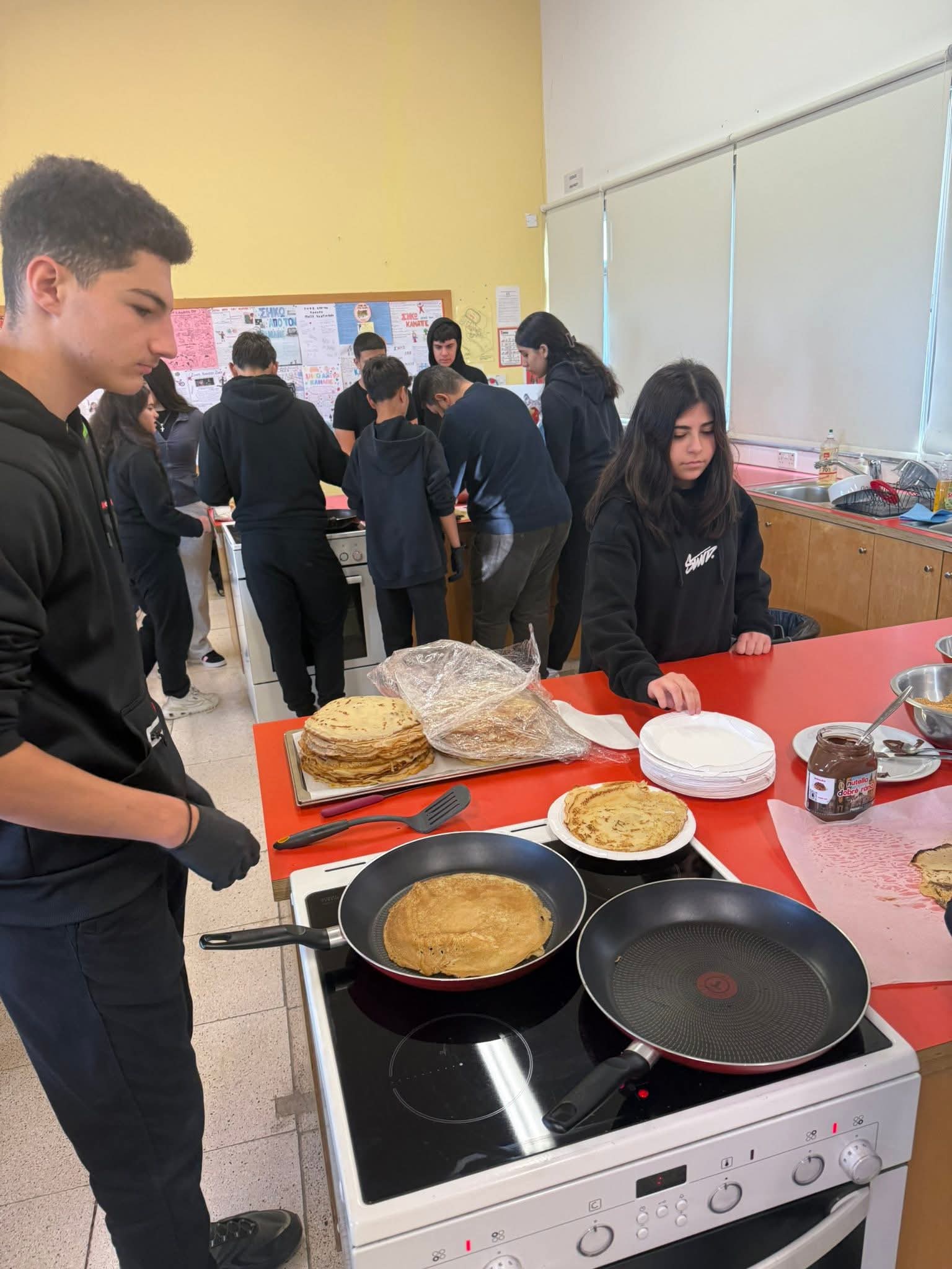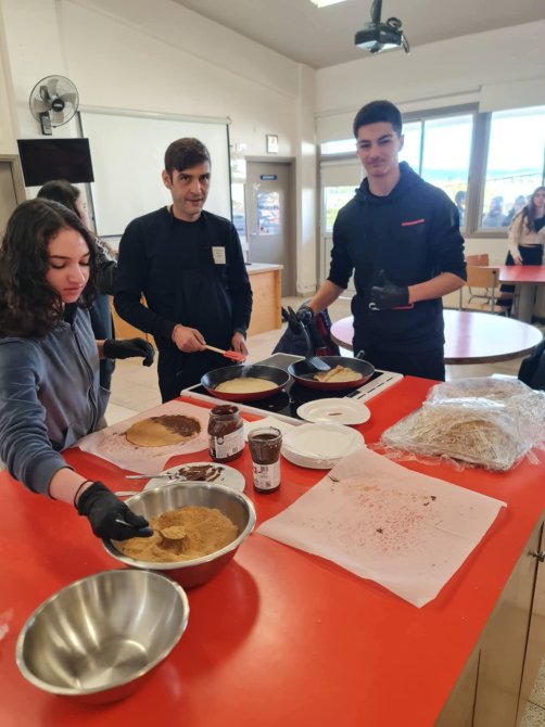 Κατά τη διάρκεια της επίσκεψης, παρασκευάστηκαν κρέπες για όλα τα παιδιά του σχολείου, στηρίζοντας το έργο της Επιτροπής Πρόνοιας του Β΄ Περιφερειακού Γυμνασίου Λευκωσίας/ Μαλούντας.