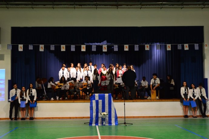 Με ιδιαίτερη λαμπρότητα και αισθήματα εθνικής υπερηφάνειας το Απεήτειο Γυμνάσιο Αγρού τίμησε την Εθνική Επέτειο της 28ης Οκτωβρίου 1940 και τον Εορτασμό της Σημαίας, σε εκδήλωση που πραγματοποιήθηκε στην Αίθουσα Εκδηλώσεων του Σχολείου τη Δευτέρα 27 Οκτωβρίου 2025.
