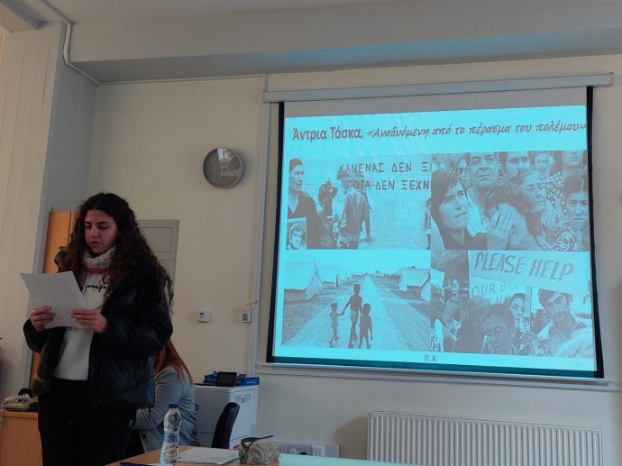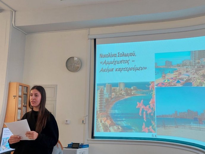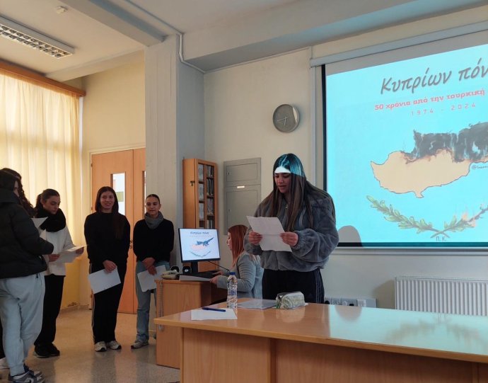 Την Τετάρτη 27 Νοεμβρίου πραγματοποιήθηκε στη Βιβλιοθήκη του Σχολείου μας αφιέρωμα με θέμα: «Κυπρίων πόνος. 50 χρόνια Εισβολής και Κατοχής». Μαθήτριες του Στ1 παρουσίασαν τα ποιητικά έργα τους. Ακολούθως, συζήτησαν με το ακροατήριο σχετικά με την πηγή έμπνευσης και αναφέρθηκαν στον τρόπο εργασίας τους. Η εκδήλωση ολοκληρώθηκε με έκθεση βιβλίων με σχετική θεματολογία από τη Βιβλιοθήκη του Σχολείου.