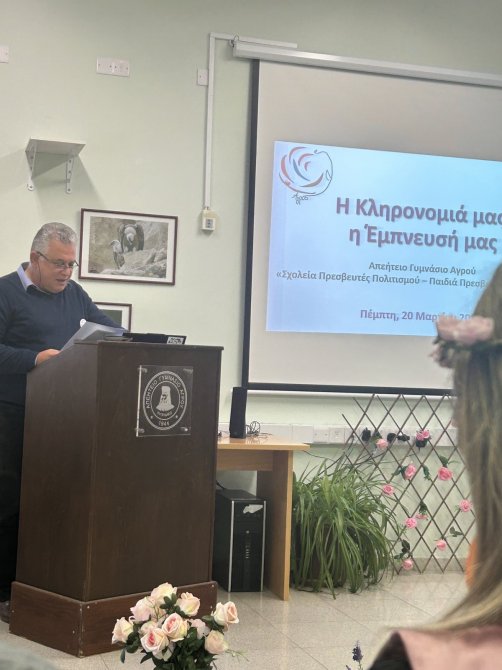 Πραγματοποιήθηκε την Πέμπτη 20 Μαρτίου 2025 η εκδήλωση «Η Κληρονομιά, η Έμπνευσή μας», η οποία διοργανώθηκε με στόχο την παρουσίαση των δράσεων που υλοποίησε το Σχολείο μας στο πλαίσιο του Προγράμματος «Σχολεία Πρεσβευτές Πολιτισμού – Παιδιά Πρεσβευτές Πολιτισμού», μια πρωτοβουλία του Υφυπουργείου Πολιτισμού σε συνεργασία με το Υπουργείο Παιδείας, Αθλητισμού και Νεολαίας.