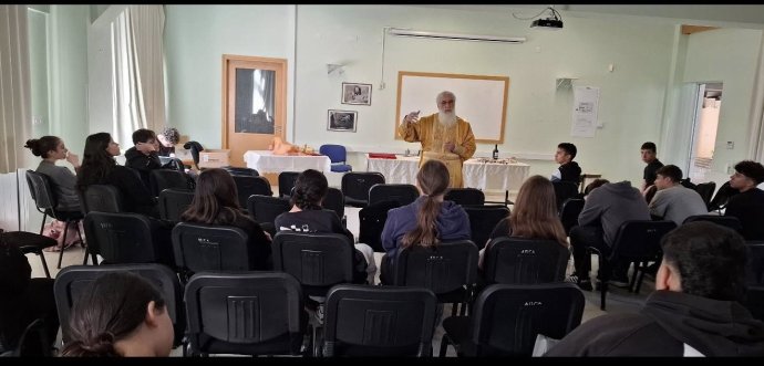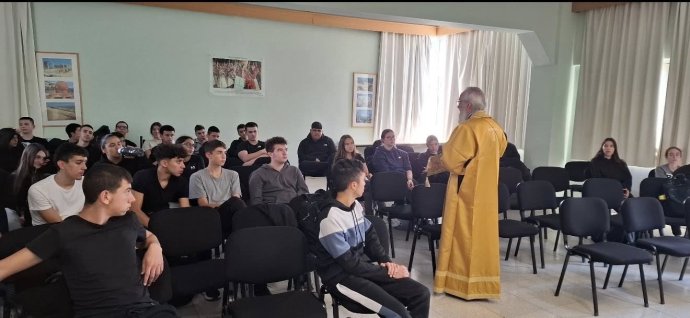 Στο πλαίσιο του μαθήματος των θρησκευτικών της Α΄ Λυκείου, στη θεματική ενότητα για τη Θεία Λειτουργία, πραγματοποιήθηκε στις 17 Οκτωβρίου 2025 βιωματικό εργαστήριο στην Αίθουσα Προβολών του Σχολείου μας.
