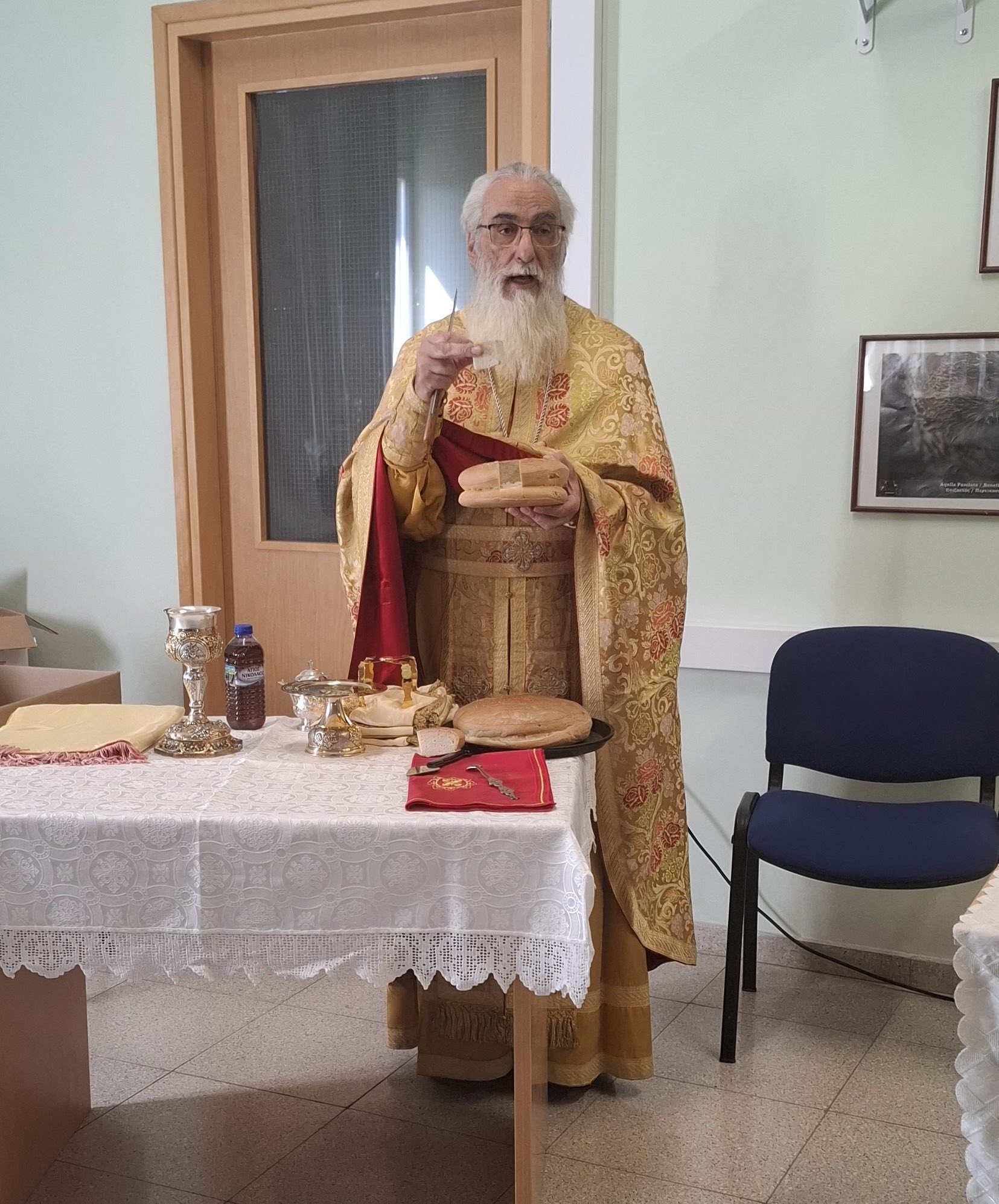 Ο Πάτερ Ιωάννης Ιωάννου, ο ιερέας πνευματικός του Σχολείου μας, με μεγάλη προθυμία μετέφερε στο σχολείο τα ιερατικά άμφια και τα ιερά σκεύη. Φορώντας την ιερατική του στολή, εξήγησε με κάθε λεπτομέρεια στα παιδιά ένα-ένα τα ιερατικά άμφια, τη σημασία και τον συμβολισμό τους. Στη συνέχεια «τέλεσε» την Ακολουθία της Προσκομιδής, με το πρόσφορο και το κρασί, εξηγώντας στάδιο-στάδιο την Ακολουθία, παρουσιάζοντας τα απαραίτητα ιερά σκεύη και ξεκαθαρίζοντας τη χρήση και τη λειτουργικότητά τους. Τα παιδιά με ενθουσιασμό συμμετείχαν εμπειρικά στη Μικρή και τη Μεγάλη Είσοδο και έβλεπαν από κοντά όλα τα ιερά άμφια και σκεύη που γνώρισαν στο μάθημα. Είχαν την ευκαιρία να ρωτήσουν και να λύσουν απορίες και στο τέλος δοκίμασαν από το πρόσφορο και την κουμανδαρία.