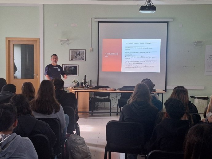 Η 3η Δεκεμβρίου, Παγκόσμια Ημέρα Αναπηρίας, αποτελεί μια σημαντική ευκαιρία για ενημέρωση, ευαισθητοποίηση και προβληματισμό γύρω από τα ζητήματα της αναπηρίας, της ισότητας και του σεβασμού στη διαφορετικότητα. Στο πλαίσιο αυτής της ημέρας, το σχολείο μας είχε την τιμή να φιλοξενήσει έναν αθλητή των Παραολυμπιακών Αγώνων στο Άθλημα της Σκοποβολής, τον κ. Μάριο Στυλιανού, ο οποίος μοιράστηκε μαζί μας την προσωπική του διαδρομή, τις δυσκολίες, τις προκλήσεις, αλλά και τις μεγάλες του επιτυχίες. Η επίσκεψη του αθλητή στο σχολείο μας έδωσε στους μαθητές πολύτιμα μαθήματα ζωής. Τους δίδαξε ότι οι δυσκολίες δεν είναι εμπόδια ανυπέρβλητα, αλλά ευκαιρίες να ανακαλύψουμε τις πραγματικές μας δυνάμεις, ότι η επιτυχία δε μετριέται μόνο με τρόπαια, αλλά με το θάρρος να συνεχίζεις, ακόμα κι όταν όλα μοιάζουν δύσκολα, προτρέποντάς τους να πιστεύουν στον εαυτό τους και να μην εγκαταλείπουν τα όνειρά τους.