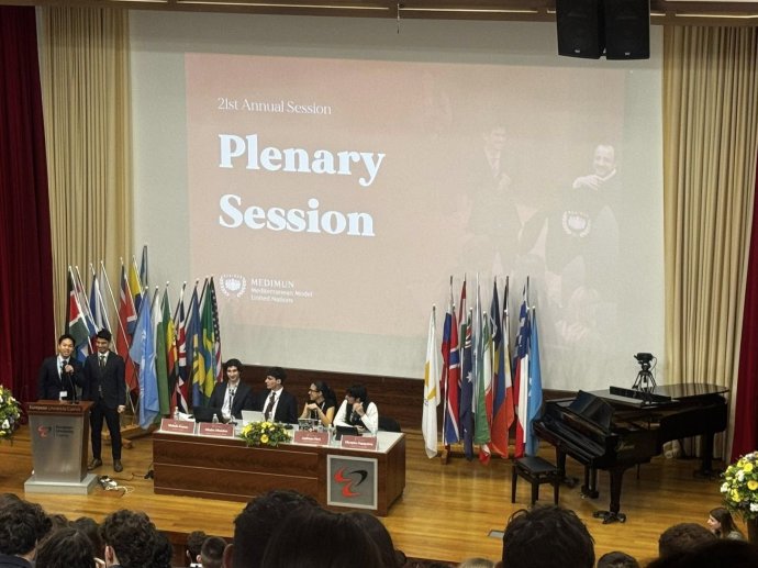 Oμάδα μαθητών/μαθητριών του Σχολείου μας συμμετείχε στο τριήμερο συνέδριο Medimun, το οποίο πραγματοποιήθηκε στο European University Cyprus στη Λευκωσία από τις 6 μέχρι τις 8 Φεβρουαρίου και διοργανώνεται από το ιδιωτικό σχολείο The English School.