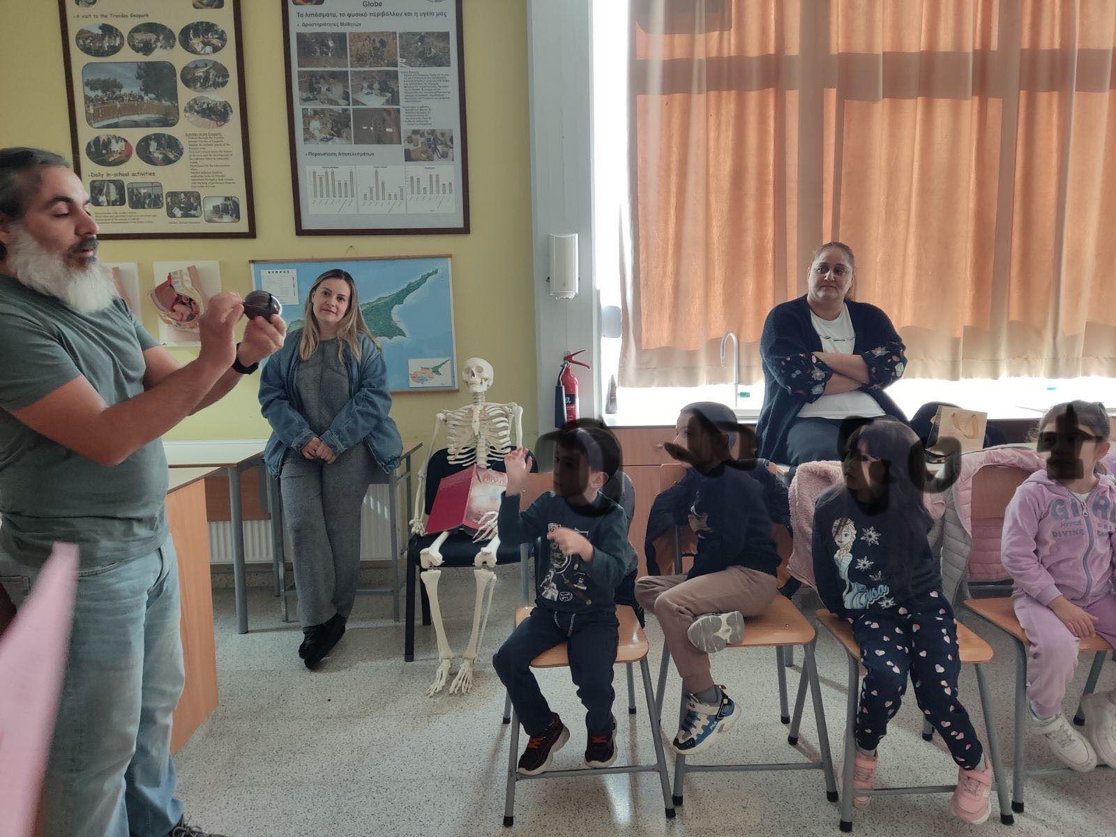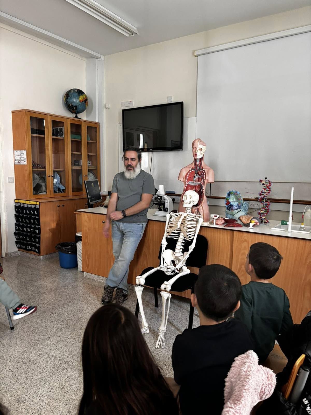 Τα παιδιά του νηπιαγωγείου, αρχικά, συζήτησαν με τις δασκάλες τους για το ανθρώπινο σώμα και ακολούθως διατύπωσαν διάφορα ερωτήματα που τους δημιουργήθηκαν. Στη συνέχεια, επισκέφθηκαν το Εργαστήριο Βιολογίας του Σχολείου μας, όπου ο καθηγητής Βιολογίας κ. Ονούφριος Μεττούρης συζήτησε μαζί τους σχετικά με τη βιολογία του ανθρώπου και απάντησε στα ερωτήματά τους. Με τη βοήθεια και της φιλολόγου μας κ. Μυράντας Παναγιώτου, τα παιδιά είχαν επίσης την ευκαιρία να γνωρίσουν τα υλικά και τον εξοπλισμό του εργαστηρίου Βιολογίας, όπως το μικροσκόπιο, τα προπλάσματα του ανθρώπινου σώματος, καθώς και τον ανθρώπινο σκελετό.