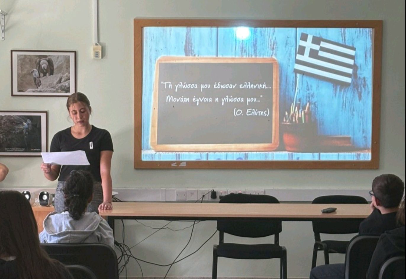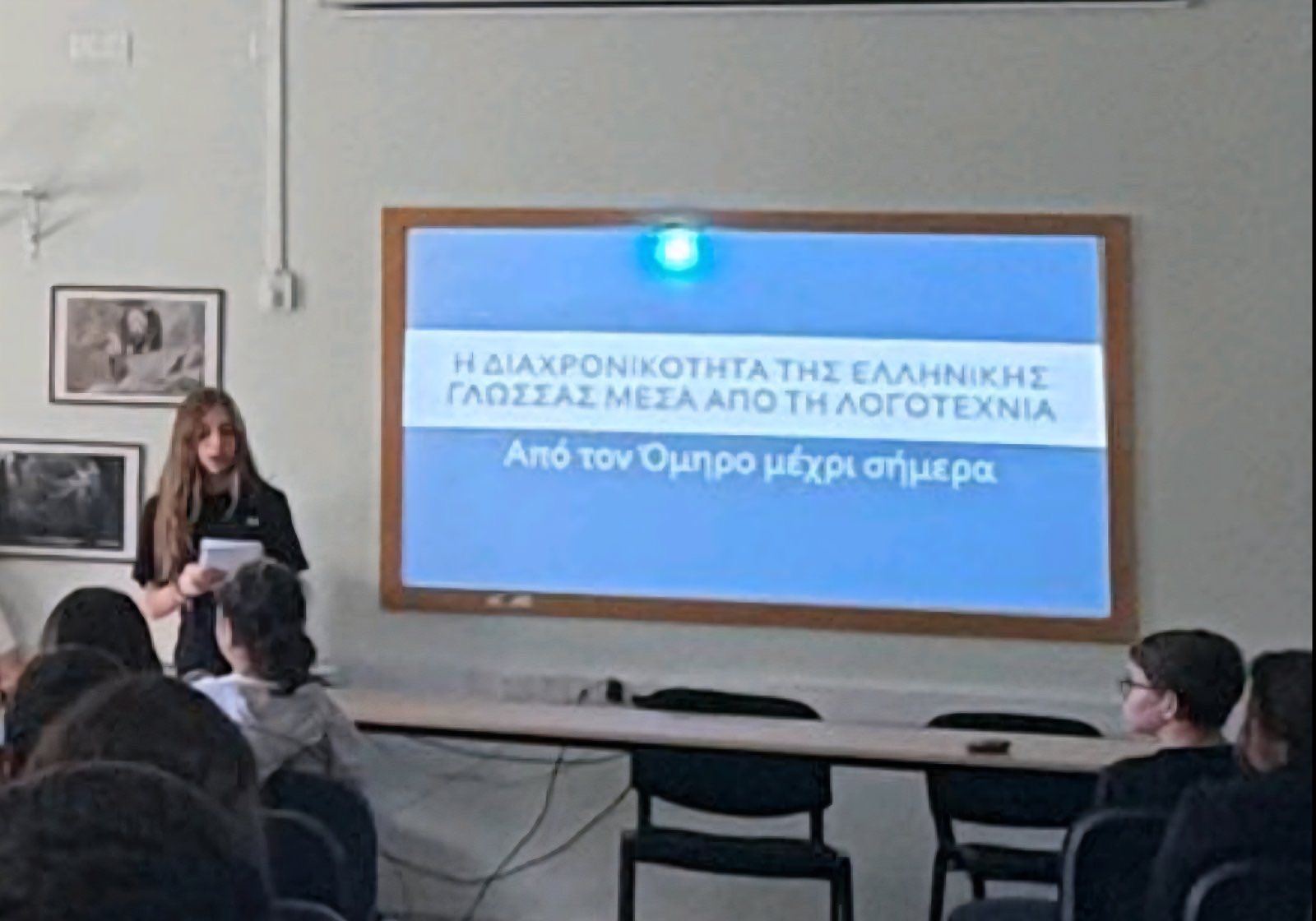 Με αφορμή τον εορτασμό της Παγκόσμιας Ημέρας Γλωσσών, οι μαθητές και οι μαθήτριες του Γυμνασίου είχαν την ευκαιρία να παρακολουθήσουν μια στοχευμένη παρουσίαση με θέμα: «Η διαχρονικότητα της ελληνικής γλώσσας μέσα από τη λογοτεχνία – από τον Όμηρο μέχρι σήμερα». Ήταν μία εκδήλωση φόρος τιμής στη γλώσσα μας, που ανέδειξε τη δύναμη, την ιστορική της πορεία και τη ζωντανή της παρουσία στο σήμερα.