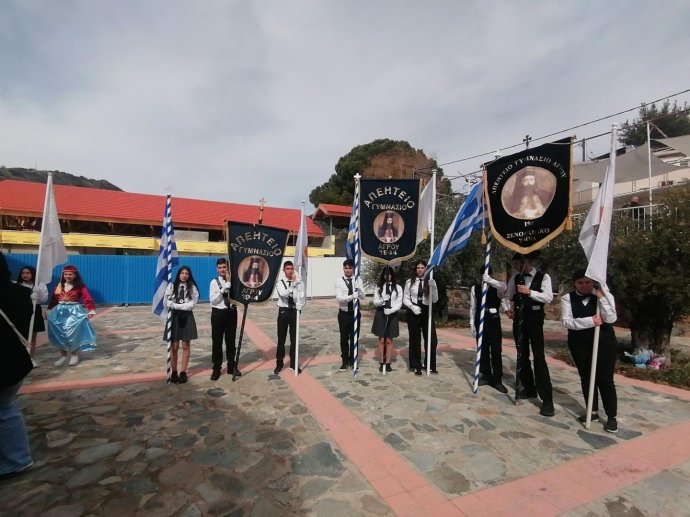 Την 25η Μαρτίου πραγματοποιήθηκε ο εορτασμός και η καθιερωμένη παρέλαση για τον εορτασμό της Ελληνικής Επανάστασης του 1821 και του Ευαγγελισμού. Τον πανηγυρικό της ημέρας εκφώνησε η κ. Ελένη Στυλιανού, Βοηθός Διευθύντρια. Της παρέλασης στην οδό Κυριάκου Απέητου και τη Λεωφόρο Γλαύκου Κληρίδη, ηγήθηκαν τα Αγήματα του Λυκείου, της Ξενοδοχειακής Σχολής και του Γυμνασίου. Συμμετείχαν 130 μαθητές και μαθήτριες. Συμμετείχε, επίσης, άψογα η μπάντα του Σχολείου. Την παρέλαση παρακολούθησε η Κοινοτική Αρχή, ο Κλήρος, ο Σύνδεσμος Γονέων και πλήθος κόσμου. Ήταν μια υπέροχη μέρα γιορτής, σεβασμού κι εκτίμησης, για όλους όσοι θυσιάστηκαν για την ελευθερία της Ελλάδος μας.