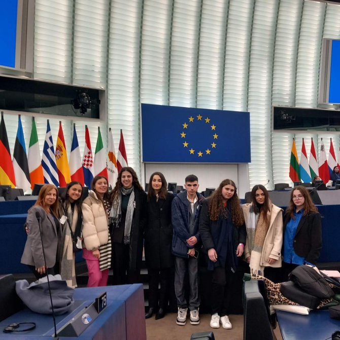 Το Σχολείο μας συμμετείχε ως συντονιστικό σε σύνοδο Euroscola, που πραγματοποιήθηκε στο Στρασβούργο στις 29 Νοεμβρίου 2024, με οκτώ μαθητές/μαθήτριες και μία εκπαιδευτικό. Κατά τη διάρκεια της Συνόδου η κ. Roberta Metsola, Πρόεδρος του Ευρωπαϊκού Κοινοβουλίου χαιρέτησε τα παιδιά, ευχόμενη η νέα γενιά να αποτελέσει υγιές κύτταρο για την Ευρωπαϊκή Ένωση. Αργότερα, τα παιδιά είχαν την ευκαιρία να απευθύνουν ερωτήσεις στην κ. Delara Burhhardt, μέλος του Ευρωπαϊκού Κοινοβουλίου για θέματα μετανάστευσης, ευκαιριών εργοδότησης στην Ευρωπαϊκή Ένωση, ισότητας των φύλων και για τις πολεμικές συρράξεις που επικρατούν στον κόσμο. Στη συνέχεια, τον λόγο πήρε ο κ. Stefan Kraous, Επικεφαλής του τμήματος Ανθρωπίνων Δικαιωμάτων, ο οποίος παρουσίασε την πολιτική της Ευρωπαϊκής Ένωσης για θέματα Προστασίας Ανθρωπίνων Δικαιωμάτων και Αλληλεγγύης, όπως και για τις φιλοδοξίες της Ευρωπαϊκής Ένωσης για έναν κόσμο Ελευθερίας, Ασφάλειας και Δικαιοσύνης.
