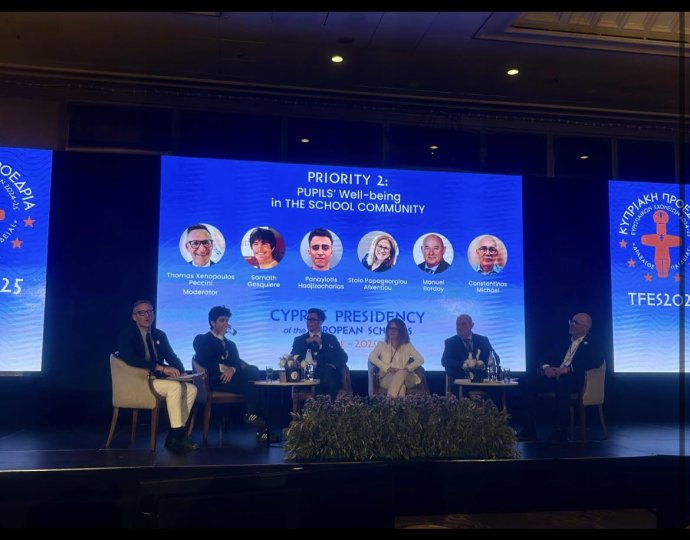 Στις 07 και 08 Απριλίου το Σχολείο μας εκπροσωπήθηκε στο Φόρουμ Εκπαιδευτικών των Ευρωπαϊκών Σχολείων (Teachers Forum of the European Schools 2025 – TFES 2025). Η Κύπρος έχει αναλάβει για πρώτη φορά την Προεδρία των Ευρωπαϊκών Σχολείων για τη σχολική χρονιά 2024-2025 και στο πλαίσιο αυτό η Κυπριακή Προεδρία των ΕΣ διοργάνωσε το Φόρουμ, το οποίο αποτέλεσε ευκαιρία συνάντησης των εκπαιδευτικών του συστήματος των ΕΣ και του κυπριακού εκπαιδευτικού συστήματος και ανταλλαγής βέλτιστων πρακτικών και καινοτόμων διδακτικών εμπειριών σε θέματα κοινού ενδιαφέροντος.