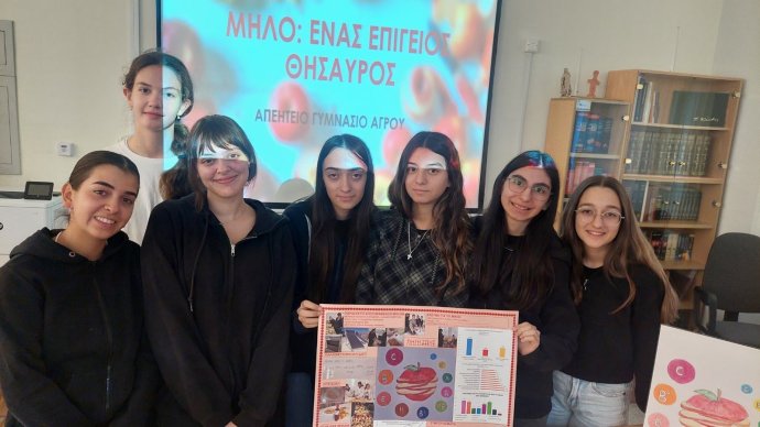 Πραγματοποιήθηκε την Παρασκευή 10/10/2025, το διάλειμμα, από ομάδα μαθητριών των Ε' τάξεων στη Βιβλιοθήκη του Σχολείου, παρουσίαση της εργασίας τους με θέμα «Μήλο: Ένας επίγειος θησαυρός», η οποία εξασφάλισε 2ο βραβείο πρωτότυπης αφίσας STE(A)M. Στο τέλος της παρουσίασης προσφέρθηκαν στους/στις παρευρισκόμενους/ες μαθητές/μαθήτριες και εκπαιδευτικούς φρέσκα και αποξηραμένα μήλα από το χωριό Κυπερούντα, με την ευκαιρία του ετήσιου Φεστιβάλ Μήλου.