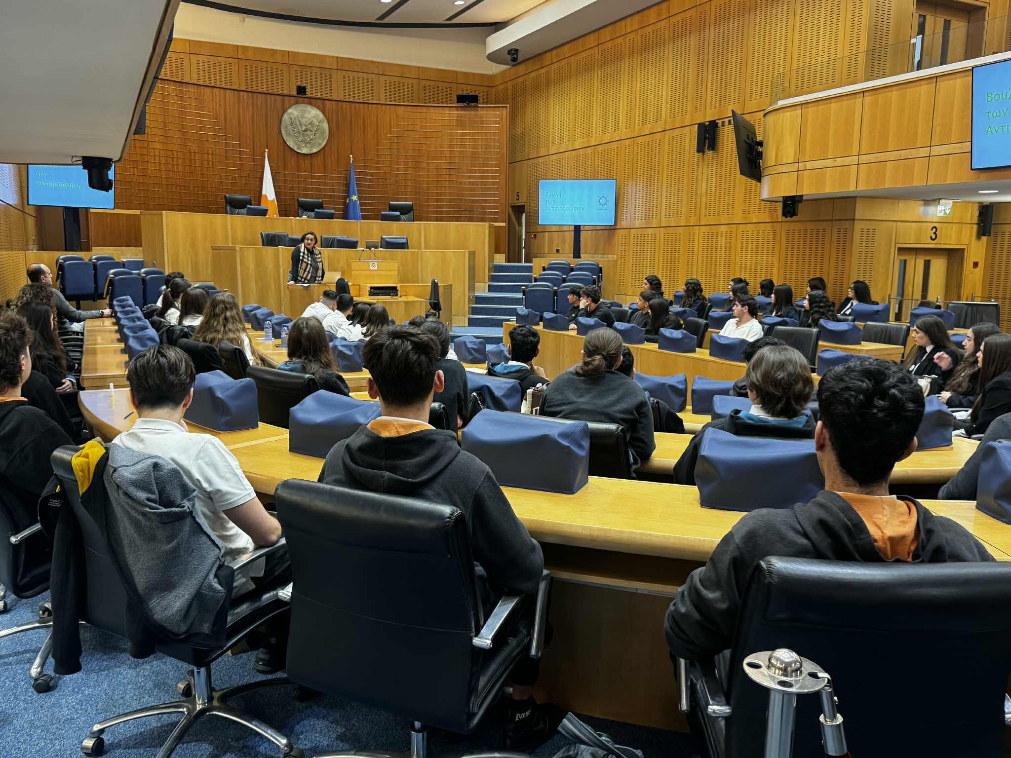 Την Τετάρτη, 28 Ιανουαρίου, οι Δόκιμοι Πρεσβευτές του προγράμματος Σχολείο Πρεσβευτής του Ευρωπαϊκού Κοινοβουλίου του Απεήτειου Γυμνασίου Αγρού πραγματοποίησαν εκπαιδευτική επίσκεψη στη Βουλή των Αντιπροσώπων. Οι μαθητές/μαθήτριες είχαν την ευκαιρία να βρεθούν στην αίθουσα της Ολομέλειας, να καθίσουν στα έδρανα και να γνωρίσουν από κοντά τον ρόλο, τις αρμοδιότητες και τον τρόπο λειτουργίας της Βουλής, καθώς και τη σχέση της με το Ευρωπαϊκό Κοινοβούλιο.